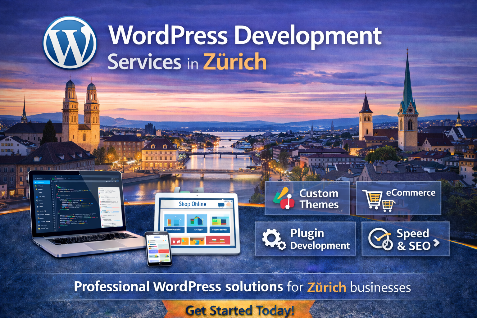 Looking for expert WordPress development services in Zürich? We build high-performance websites that combine stunning design, robust functionality, and seamless user experience. Whether you need a corporate website, startup platform, or a full-featured eCommerce store, our solutions are tailored to help your business grow online.